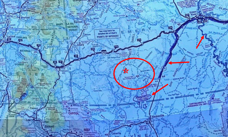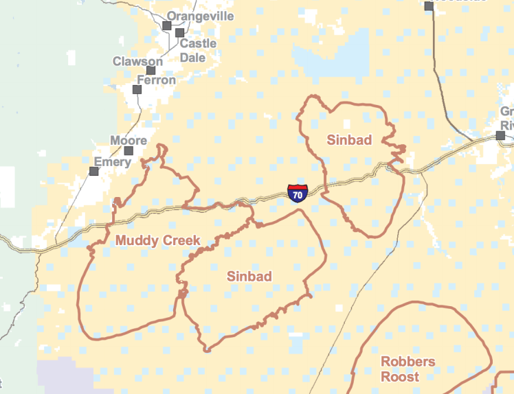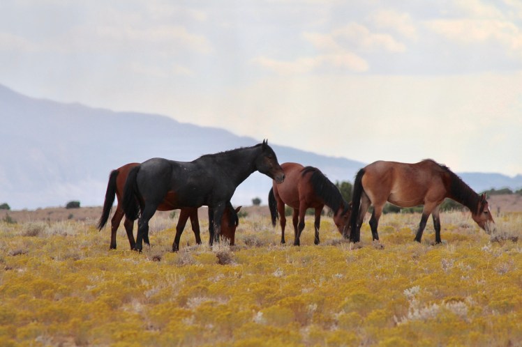 There’s a piece on Wild Horse Tourist that mentions the HMA lines were redrawn in 2011. Perhaps what we saw was a band within the Muddy Creek HMA, which used to be in the Sinbad area and are different than the ones pictured on Wild Horse Tourist. (we saw no paints or roans, only brown, black, bay, buckskin and grulla), and the BLM info about horses in that area is just out of date. Who knows.