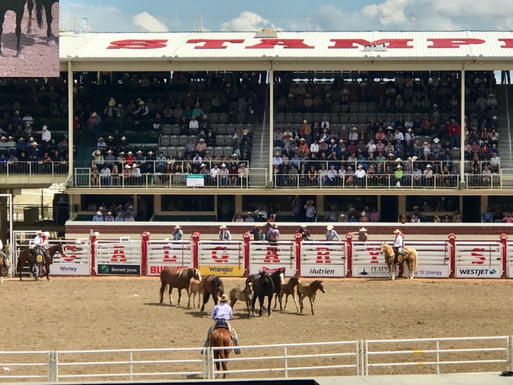 We ended our vacation at the Calgary Stampede evening show, which was…kind of a trip. It started like this: